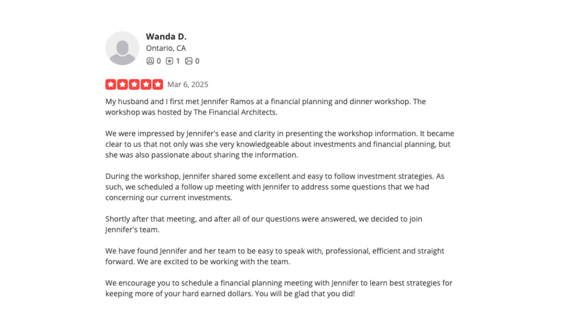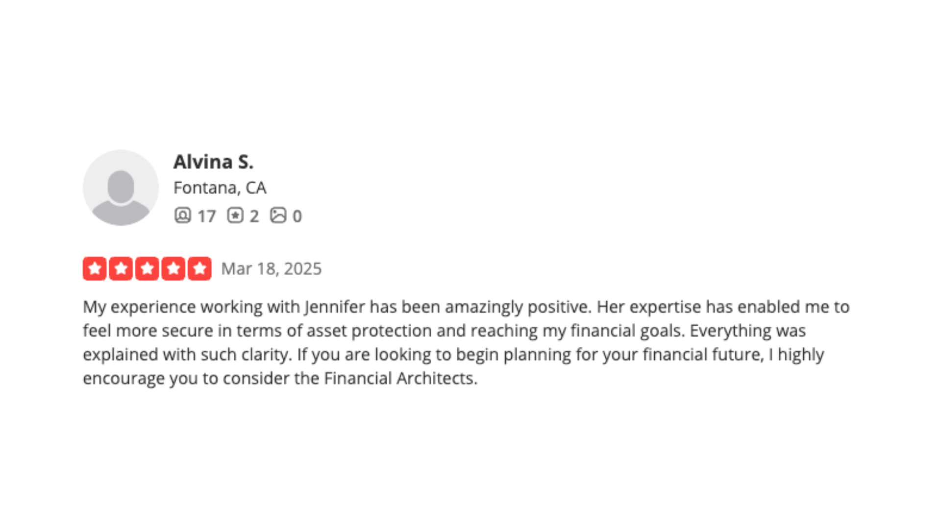 Jennifer Ramos is the Managing Partner at The Financial Architects, where she has spent more than 20 years helping families across California protect their retirement savings. She has personally guided thousands of households through the challenges of rising healthcare costs, taxes, and market volatility — ensuring they have plans designed to last a lifetime.