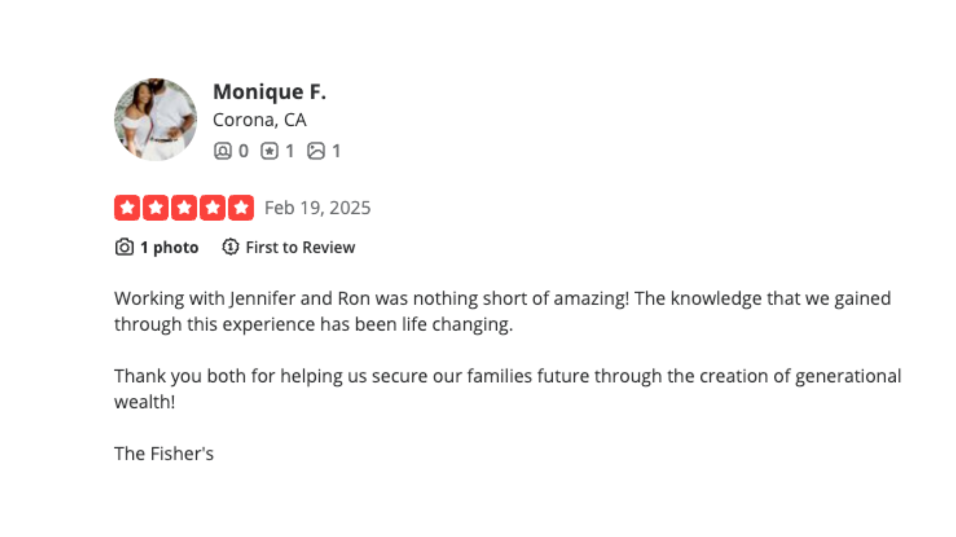 Over 20 years of experience helping thousands of families across California retire with confidence.